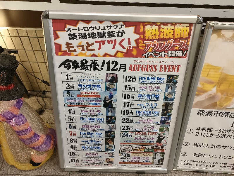 たしか、サウナ改装後あたりからアウフグースサービスで有名人を呼ぶようになり、何回かそれ目当てで来てたのだが、最近はほぼ毎日アウフグースサービスで、いろんな有名人が来まくってせわしない感じもする。今日は日程が合わなかったのか、特にイベントなし。