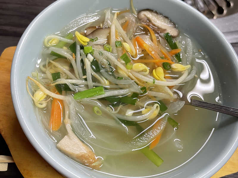 もやしシャキシャキ!スープが優しくて、塩分もちょうど良い!