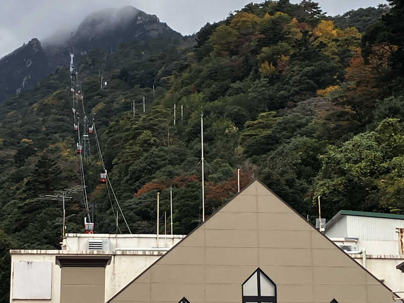 景観はとても良く、山の景色やロープウェイのゴンドラが見えますが、構造上背の高い方は同時にホテルの駐車場からマッパが見られちゃう可能性がありますw