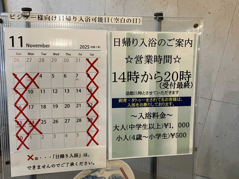 あっ日帰り入浴はホームページで確認を