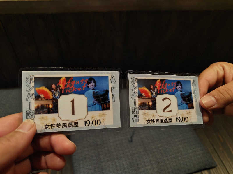 スタイル:タオル、うちわ 熱風蒸屋 ①アロマロウリュ+熱波 11時、15時、19時 ②アロマロウリュ+アウフグース17時、21時、22時(男性のみ22時) ③ アロマロウリュのみ13時、18時 |
