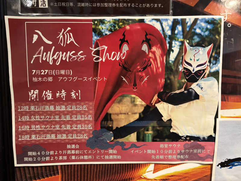 月1、2回アウフギーサーをお呼びしてのイベント有。メインは岩盤浴の汗蒸幕にて。