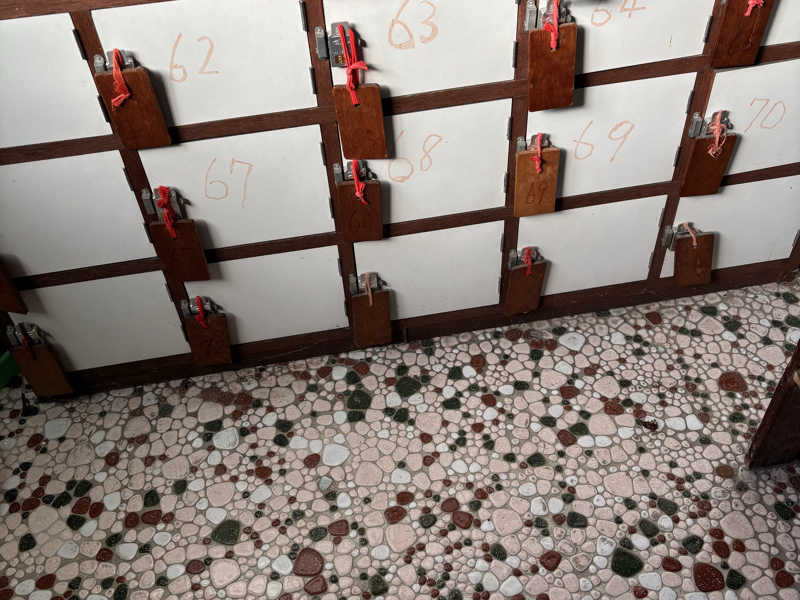 あと水風呂の周りの壁の細かいタイルに描かれている謎模様がめちゃくちゃ気になる。全部手描きっぽい謎の線画。一点物のようにも見えるし、パターンがあるようにも見える。同じのがないか探しましたが見つけられへん。超高難度の神経衰弱してる気分。そんな事してたら、身体がひんやりクールダウン。またサウナへ♪