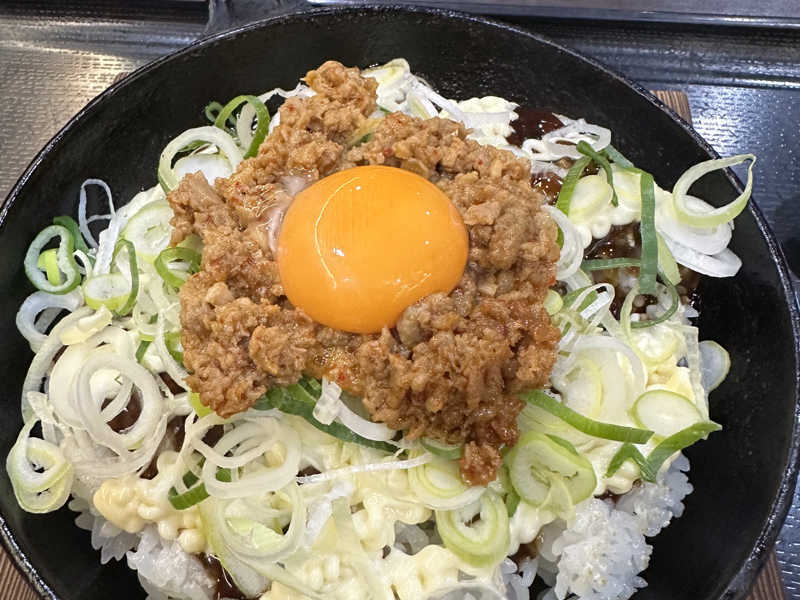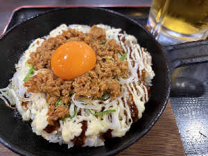 最初は広島焼きのようなお味。混ぜるとピリ辛で美味しい😋
