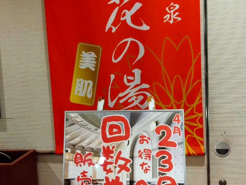 入館して、風呂のフロントに着くまでの間、今日は混雑しますよ告知の張り紙あり。