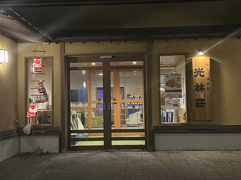 隣に建つ、おとべ温泉光林荘という宿泊施設のフロント横に、日帰り温泉の券売機があり受付。こちらの、いこいの湯の建物とは、廊下で繋がっています。
