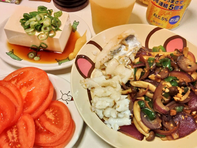 嫁さん帰宅で彩りある食事!😉