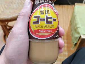 雪印のコーヒー牛乳(130円)やはり瓶だと美味しく感じる。雪印のはかなり甘めだけど、それも良い!