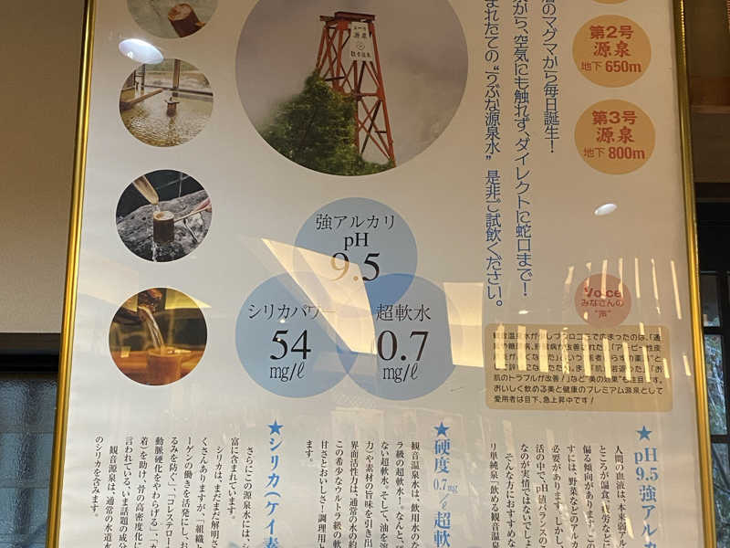観音温泉水がウォーターサーバーで飲めるのも良い。うま〜っ。ドライヤーも沢山あるし、全体的に綺麗で快適だ。マッサージチェアやトイレも完備。