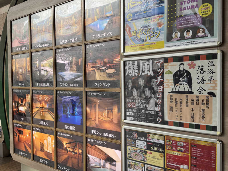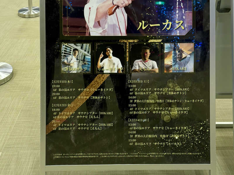 大阪市公衆浴場法の関係で男女一緒には入れませんが、今後はドイツエリアの140人入る大きなサウナシアターを使って、大規模なアウフグース大会なども開催してほしいです(願望)