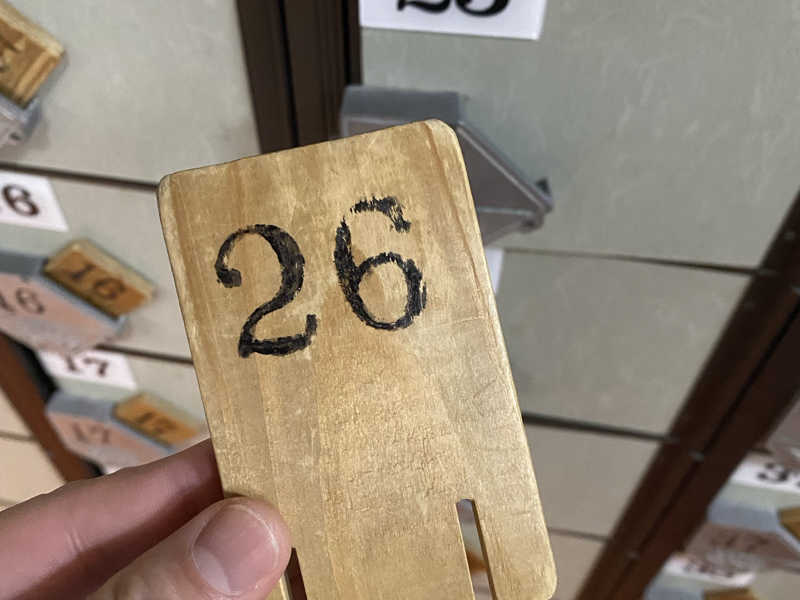 脱衣所ロッカー上には常連の方々のものと思われるお風呂セットが並んでいました。