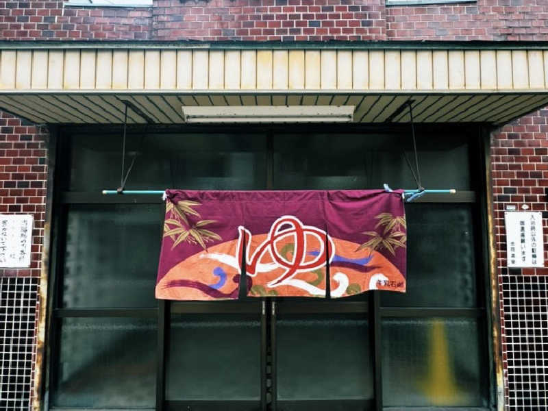 銭湯のススメ2025スタンプラリーの暖簾がかかっている。