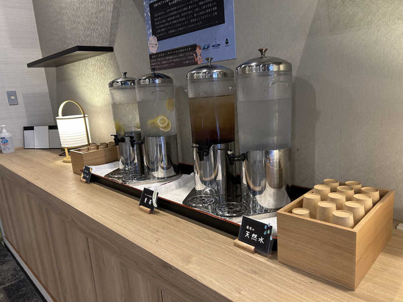 レモン水、麦茶、天然水と充実している)。やむなく一度服を着て水分補給。その後は良い感じでサウナ循環に入れた。何気に外の足を伸ばせる長方形型の壺型風呂がめちゃ気持ち良かった。大勢のたぬきの置き物に看取られながらめちゃスッキリしました🤩結果、帰りのバスの時間まで余すことなくのんびり過ごせた♨️