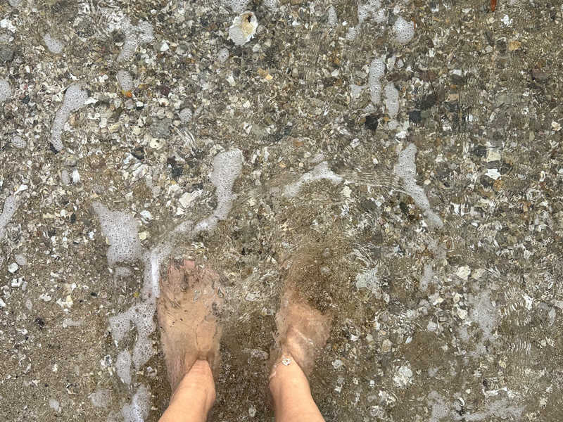 その後、海まで裸足で歩いていき、ひとりダイブ。