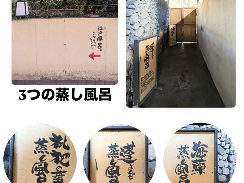 海藻、よもぎ、枇杷の3種類の蒸し風呂がある。