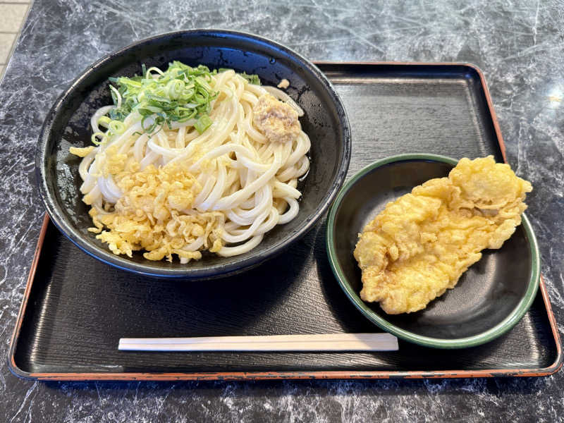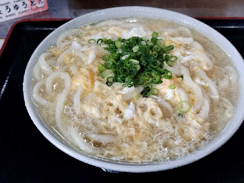 案の定天ぷらうどんは完売してたので、肉うどんにあげと生卵をトッピング👍