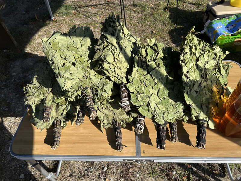 その後はサ友と話したり、IZBAのピロシキを摘んだり、途中でサウナに入ったりとゆったり過ごしました。そして最後はCHIL SAUNERのドームテントでエレバさん、モコさんのウィスキングを受けました。優しい口上からスタート、ヨモギが入ったインヒュージョンもいい匂いでした。ウィスキングはパワフルでバシバシ打たれました。途中のミストと氷水の頭掛けがめちゃ気持ち良かったです。