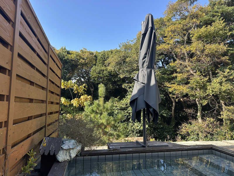 共に😆天井にブルーアイスが吊るされていい香りが広がる中、室内は激熱に仕上がり、ケツが熱い🥵サウナマットを借りケツの熱さは和らぎましたが、ロウリュしたらかなりアツアツに🤯そんな中サウ仲間の皆様とサウナ談義に花を咲かせながら蒸されました😄水風呂は目の前の大きなプールに😄サウナグッズ研究室さんの水風呂ウォッチでは18℃を指しちょうどいい水温😋じっくりクールダウン😁続いては昨年3月に新設されたログ右手のバレルサウナへ😆通常バレルサウナといえば縦長、両脇に座面があることが多いながらもこちらは横に入口があり、左手に全室、右手にサ室があり、入ってすぐ左手が熱源、右手が1段、正面は2段のL字型座面、上段は背中を窓に向けるという珍しい造り🤔室温は102℃といい仕上がりながらロウリュすると抜けも良き👍アツアツになってサ室を出ると左手に樽水風呂😆サウナグッズ研究室さんの水風呂ウォッチでは17℃を指し