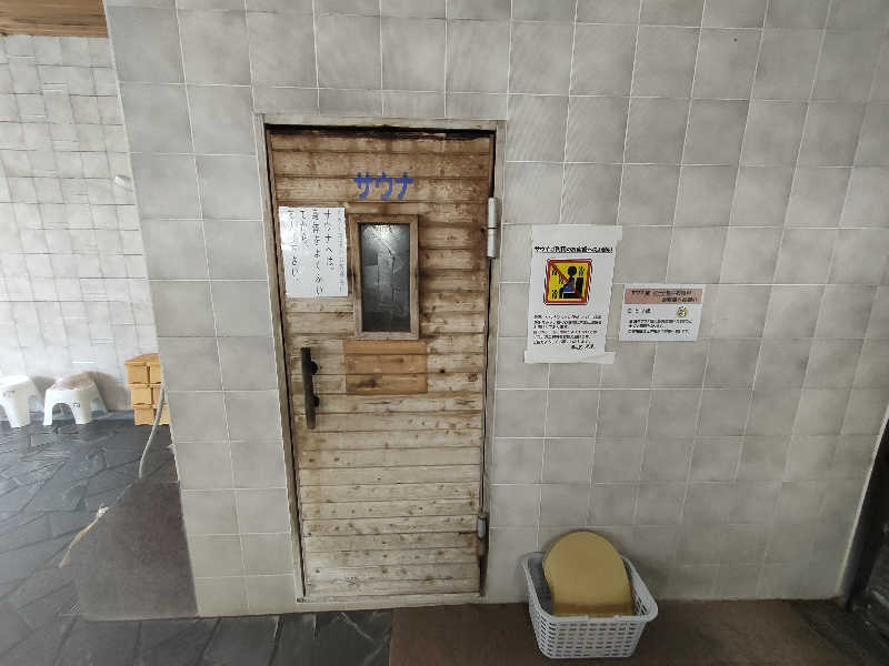 オリンピアのストーブが焚かれている、オーソドックスなサウナ。この普通さがいいですよ。壁材に染みた硫黄臭はなくなったけど。若干温泉自体も硫黄臭が低減されたような。