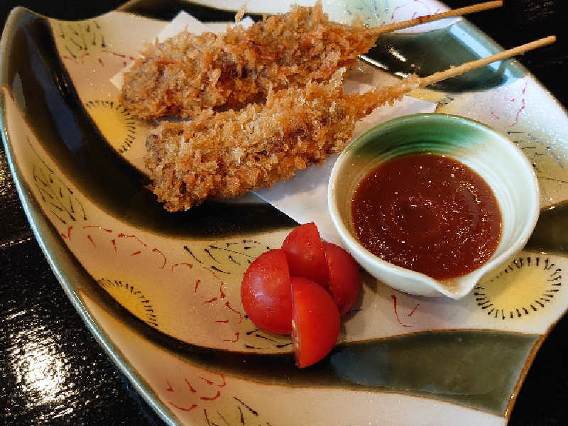 サ活前に、黒潮本陣前の食堂で「カツオのたたき🐟️」