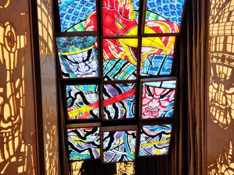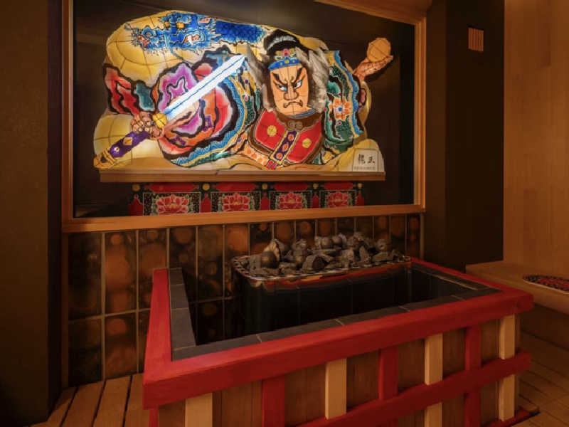 サ室にねぶたは圧巻。サウナに飾られているのは7代目ねぶた師名人、竹浪比呂央さんの作品らしく。