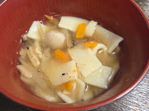 豪華ではないけど、大分名物のだんご汁あるの嬉しい。