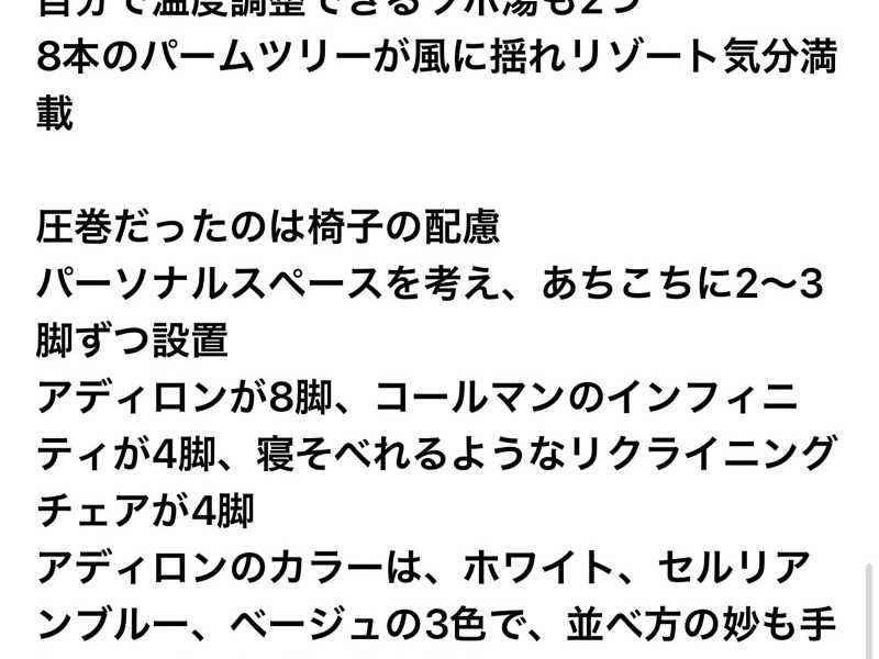 相対的に素晴らしい施設なのですが水風呂がもう少し冷たいと最高だなと思います。