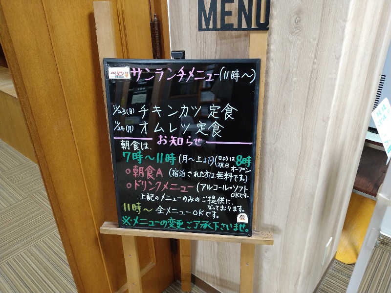 火曜日 24時間営業 水曜日 24時間営業 木曜日 24時間営業 金曜日 24時間営業 土曜日 24時間営業 日曜日 24時間営業 レストラン営業時間 朝7時〜夜23時 (金曜土曜・祝日前夜のみ24時まで) |