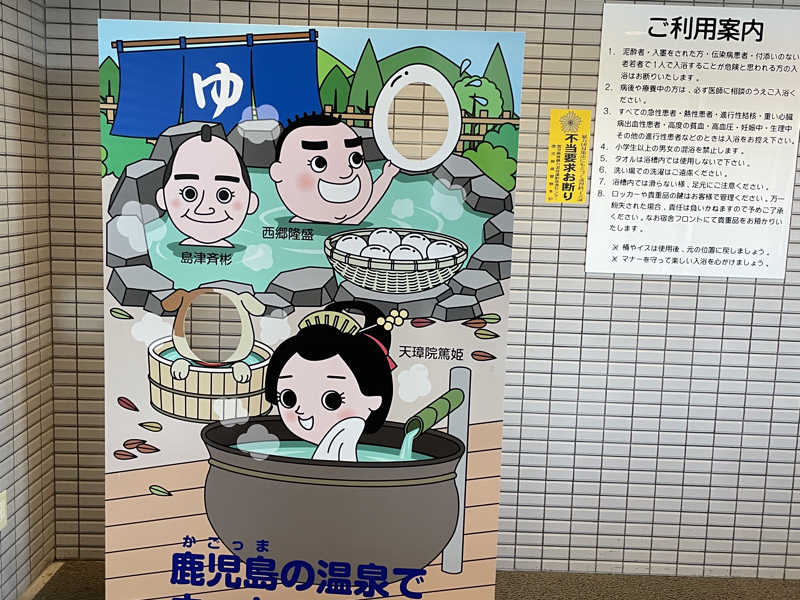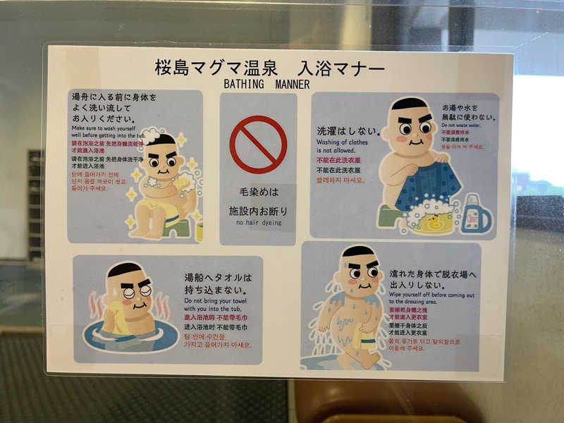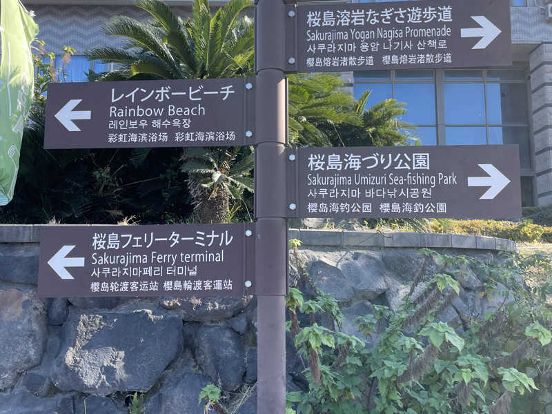 桜島へ行ってきました。20分間隔と頻繁に船が出ているのは有難いですね。桜島に来た目的は観光では無く勿論サウナです。11時から営業開始で11:25頃にIN。10月から値上げのようですが現在は390円と安すぎます。脱衣所ロッカーは籠スタイルで貴重品用の小さなロッカーは100円。カバンなど入れる用のロッカーは200円。それでも安いですね。お風呂は桜島側では無く湾が見えます。頻度高くフェリーが通るのが見えます。サウナは2段のテレビ無し。遠赤の昭和サウナ。温度は90度弱ですが体感温度は更にマイルドです。水風呂は掛け流し。体感19度くらいで長めにゆっくり身体を冷やします。ととのいスペースは水風呂すぐ隣のプラ椅子3つ。4日間の鹿児島サウナで充分ととのいました。帰ります!