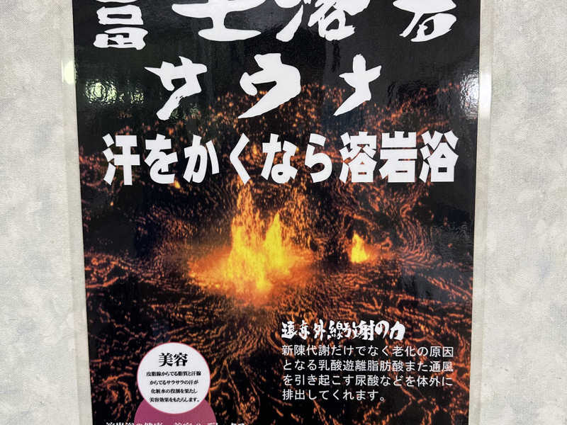 富士溶岩サウナとあちこちに掲示があり、気合が伺えます✨サ室は2段で5〜6人くらいの大きさ。