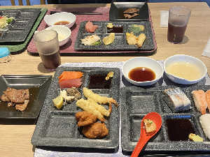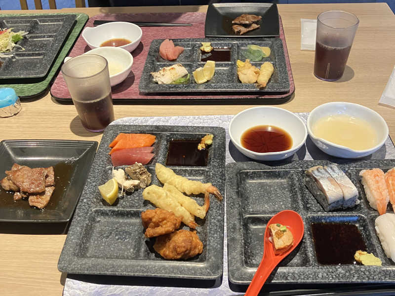 サーロインステーキ、温泉蒸籠蒸し、和・洋・中を取り揃えた豊富なメニューで大満足!