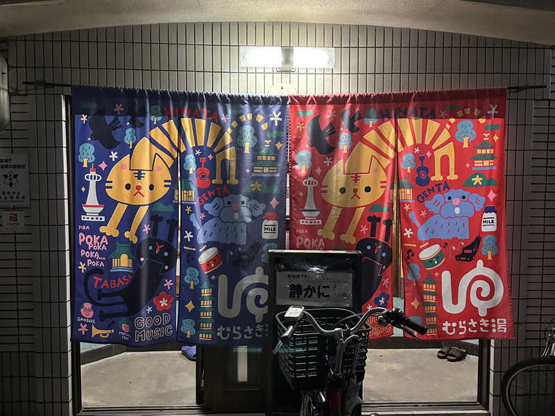 ちょうどパンダ銭湯のイベント中でパンダ湯の暖簾がゆらゆら🐼
