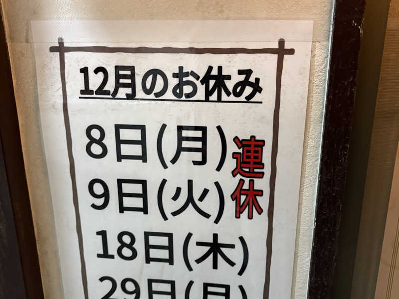 一言:本日のサ活は小松湯さんへ。今年も何度もお世話になりました。ありが湯ございます。こちらの大魔王サウナは激熱なので、本日は下段メインで!今日もいい感じの熱さ、入って3分で汗が噴き出してきます。目の前にはストーブ。ストーブの上にはヤカン大魔王。大魔王と格闘すること10分、限界のワタシを迎えてくれるシングルの水風呂は最高に気持ちよくて、でも冷たすぎて20秒が限界。極限の熱さ、冷たさを味わった後の至高の休憩タイム。最高だー。今日も3セット。あーよかった。銭湯スタンプラリーもスタート。いっぱい集めるぞー。