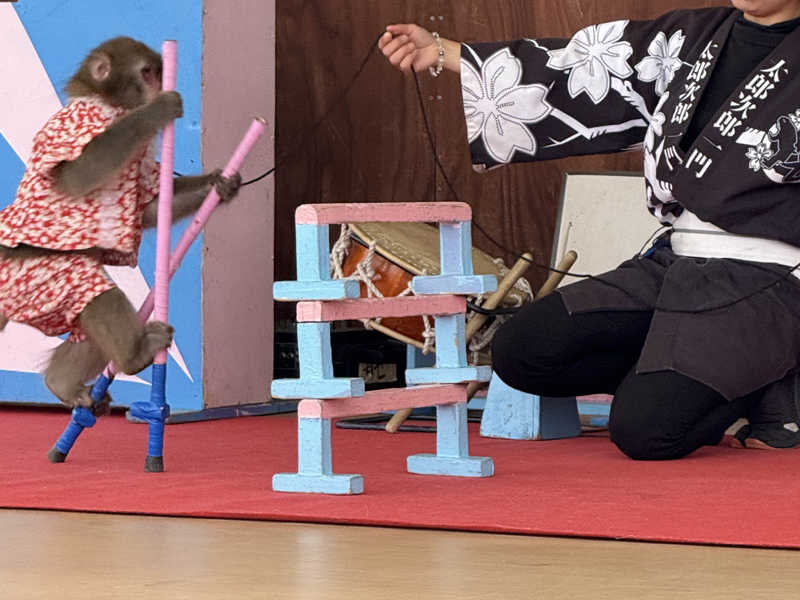 あら・伊達な道の駅に、日光猿🐵軍団のイベントあってオモロイ🐵、栗🌰団子食べながら観た