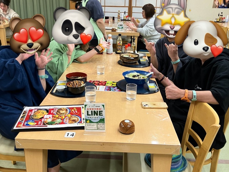 お昼には施設のレストランでサ飯をいただきながら🍜みんなと情報交換🔄その後は締めのいずちゃん熱波で🔥フィニッシュ😡熱波いて〜😵
