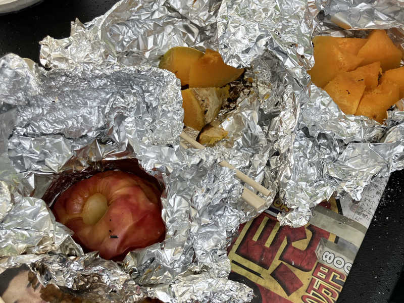 炭火で作った焼き芋や、焼きリンゴ、かぼちゃ…