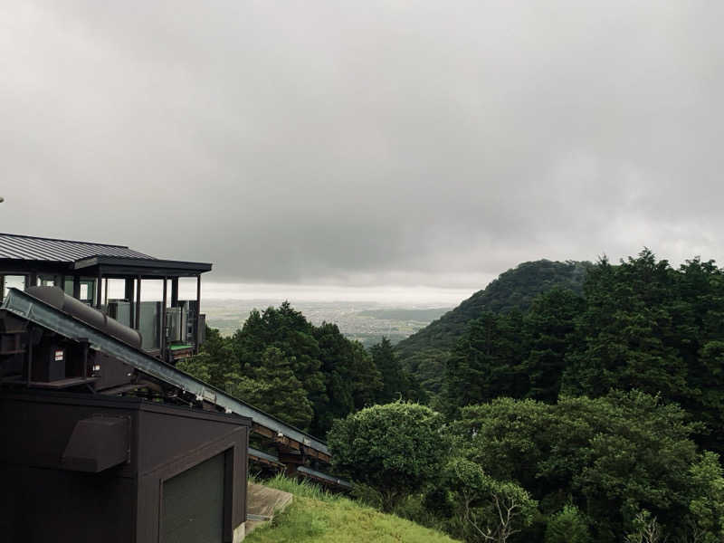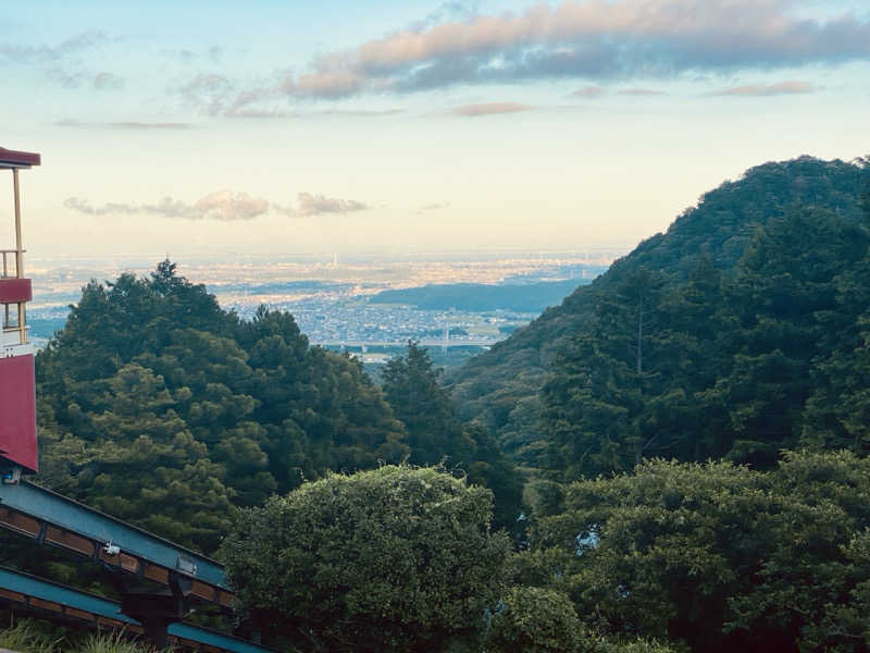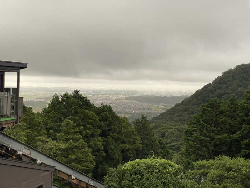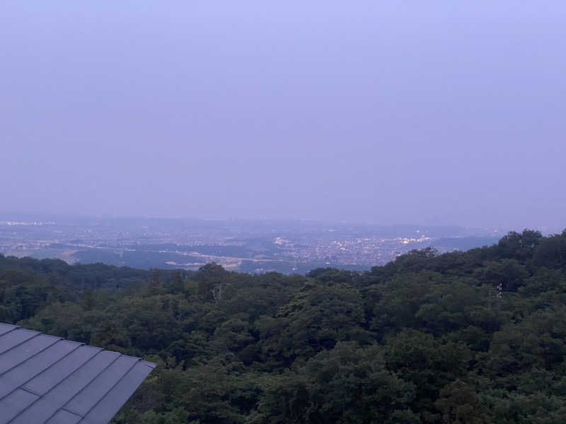 露天風呂のフチに座って下界を見ながらの外気浴、お山では既にひぐらしがカナカナカナ〜って鳴いてる