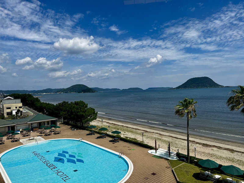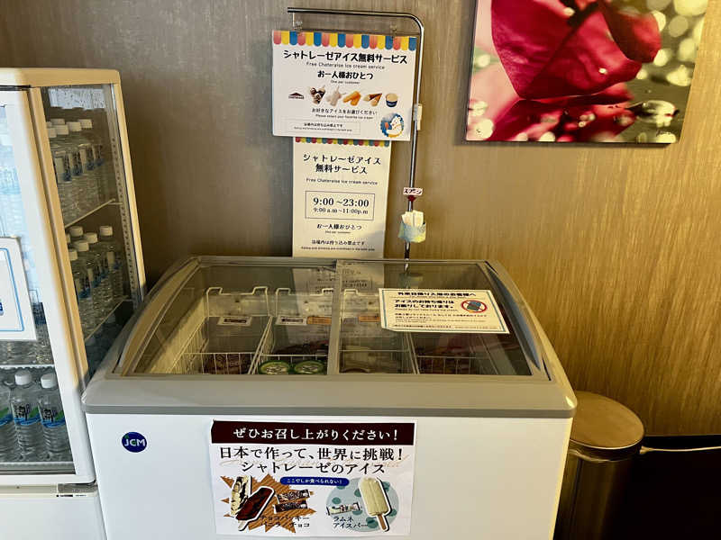 博多から電車で1時間ちょっと揺られてやっていました。11時頃にIN。西館と東館がありますが日帰り入浴ができるのは西館側。受付は宿泊フロントとは異なり大浴場のある3階にあります。3階の券売機で入浴料を支払いタオル類を受け取ります。水のペットボトルとシャトレーゼアイスが貰えるのが有難いです。お風呂かはのオーシャンビーが素晴らしい眺め。本日晴天で海が綺麗です。海では海水浴している方々もいます。露天風呂は2-3名くらいのコンパクトサイズ。サウナは2段のテレビ無し。こちらも3名くらい入れるコンパクトサイズ。ストーブは小さなmetos。マイルドアチアチの温度は92-97度。扉が開くと温度が下がります。水風呂は蛇口から常に水が出ているオーバーフロー。温度不明ですがチラーは無くて22度くらいの体感温度です。ととのいスペースは無く露天風呂の淵か脱衣所で休息。風呂上がりのアイスが最高に美味いし休憩処からの眺めも良いしで晴天の日に訪問したいところですね。