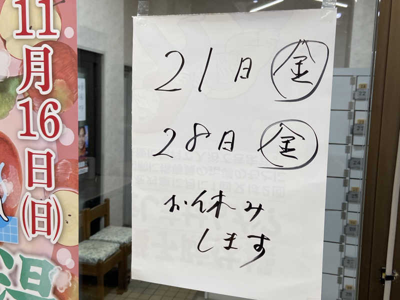 いつもの下足箱、いつもの様にのんびりされてるご主人にSuicaで支払いをして脱衣所へ。