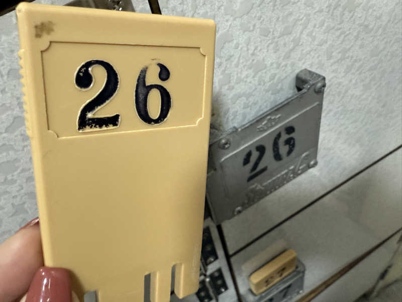 サウナ室の鍵とバスタオルをもらって