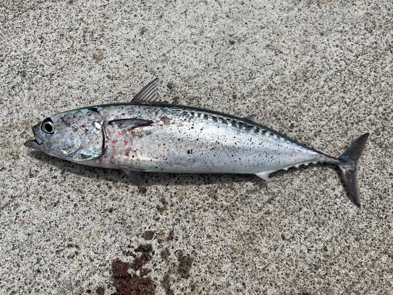 ソウダガツオの群れが入って来たので、魚の引きを堪能(あまり美味しくないので1匹のキープ)
