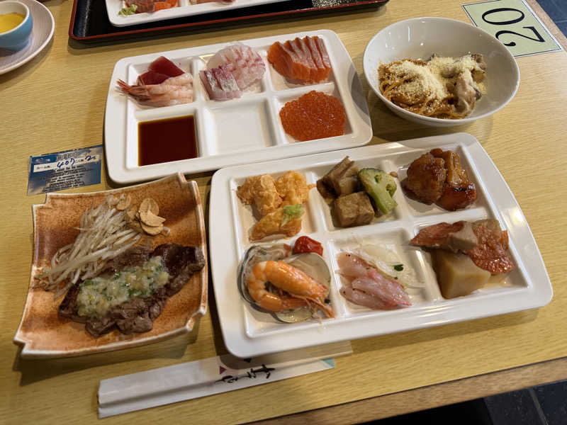 古くからあるホテルをそのまま使っているので休憩所やゲームコーナーは昭和の香り。ドリンク類の自販機はお高め。アイスの自販機やマッサージ機には調整中の紙が貼ってあり利用できませんでした。脱衣所の手前に小型の貴重品ボックスあり。