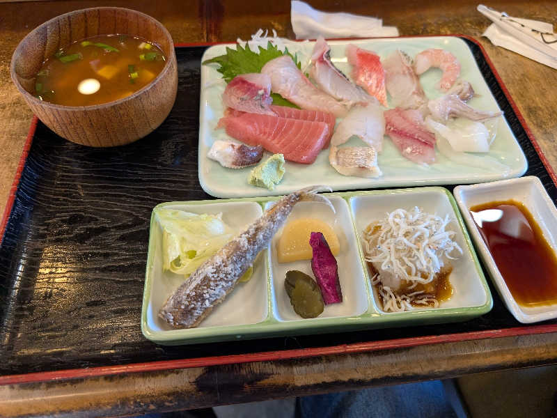 がまポンクーポンで値引きありとのことで事前準備をして1500円が3割引で1050円に刺繍いりのハンドタオルもいただけました。11時30分頃に到着したのですが誰もいません浴室貸切り状態!サウナも浴室も誰もいません。浴室からは三河湾が一望出来て景色は最高!しかもサ室からもオーシャンビュー!サ室からのオーシャンビューは初かも?肝心のサウナはやや温度低めな感じ82℃スタートで88℃ほどまで上がりましたカラカラサウナなので汗は遅れて出てくる感じでいいですね!広さは詰めれば8〜10人くらいはいけそう、ただ当日はほぼ貸切りでしたけど、旅館サウナにしては大きめです。水風呂は温度計ないですが体感12℃くらいかなり冷たいです。他の方のコメントみてると外気温に影響してるみたいなんで真冬に行くとかなり冷たいです。外気浴用のイスが4脚おいてあり三河湾を眺めながら整えます。13時頃には他のお客さんも来だしたので昼食後のお風呂なのかな?スーパー銭湯などは常に人がある程度はいるので景色も良く静かに入りたい時はおすすめです。また春になったらリピートします。