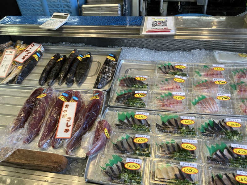 お土産の鰹のタタキだけ買って帰るつもりが、あまりにも美味しそうだったので、ついついキハダマグロの刺身と鰹のタタキをイートイン。