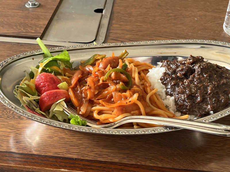 まずは、前から気になっていたワシントンカレーとナポリタンが一緒に食べれるメニューを注文。
