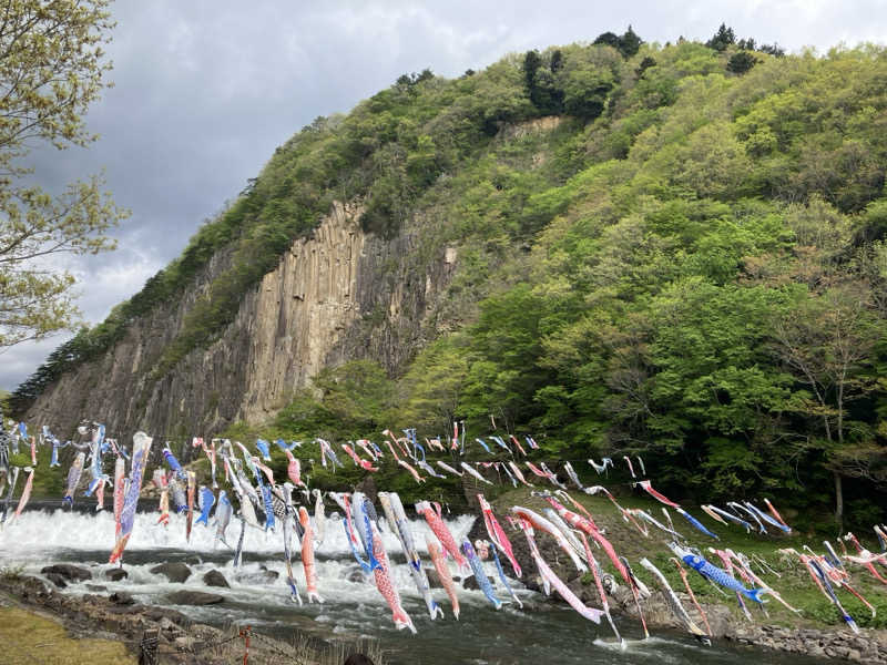 材木岩で鯉のぼりが気持ちよさそうにたなびいていました。