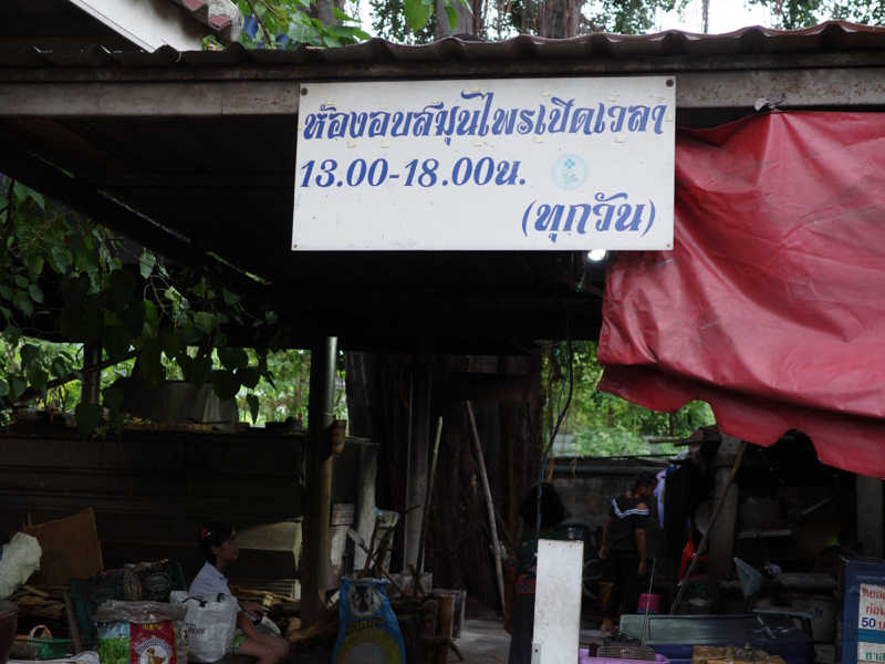 早速サウナに入ってみるものの、全然暑くない😰こんなもんなのかなーと思っていたら、地元のオジサンが、温度計指さして、時計指さして何やらタイ語で説明してくださっている様子。なるほどあと10分くらい待つんですね。