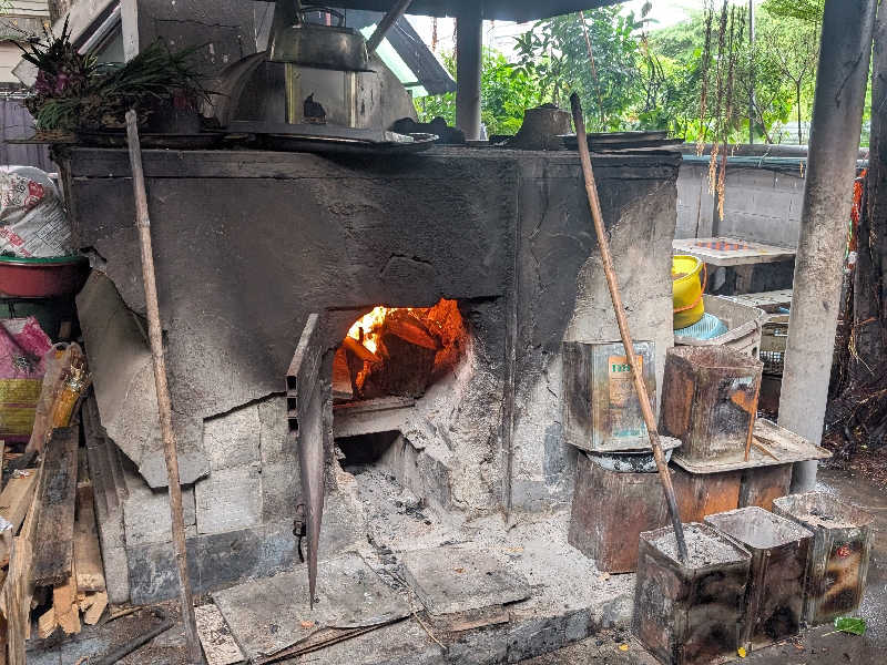 初日に入った時のそれとは違う。もっとレモングラス的なさわやかな感じ。配管が床に沿って付いていて、そこが火傷する熱さ。なので足元から熱い。おばあちゃんが薪入れ頑張ると急激に熱くなる。