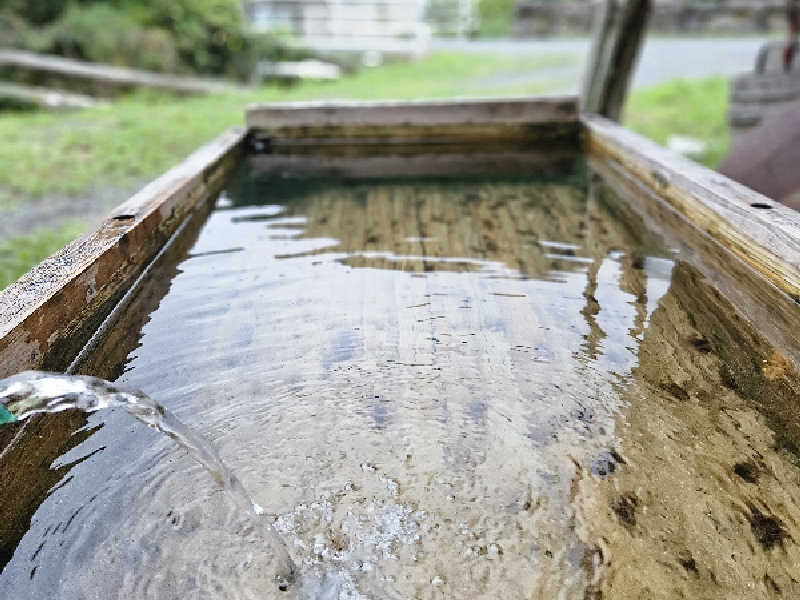 なんと飲用可能なかけ流しの硬水は体感16℃くらい。全身にスッキリ染み入り思わず声が出る心地よさ!