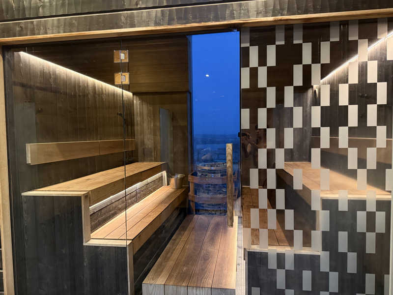 ホテル16階に宿泊者用のジム、プール、サウナがあり、サウナは朝7時から夜22時までの営業。